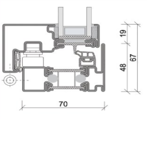 hoch Wärmedämmung der Profile Wärmedurchgangskoeffizient Uf = 1.7 W/(m²·K)